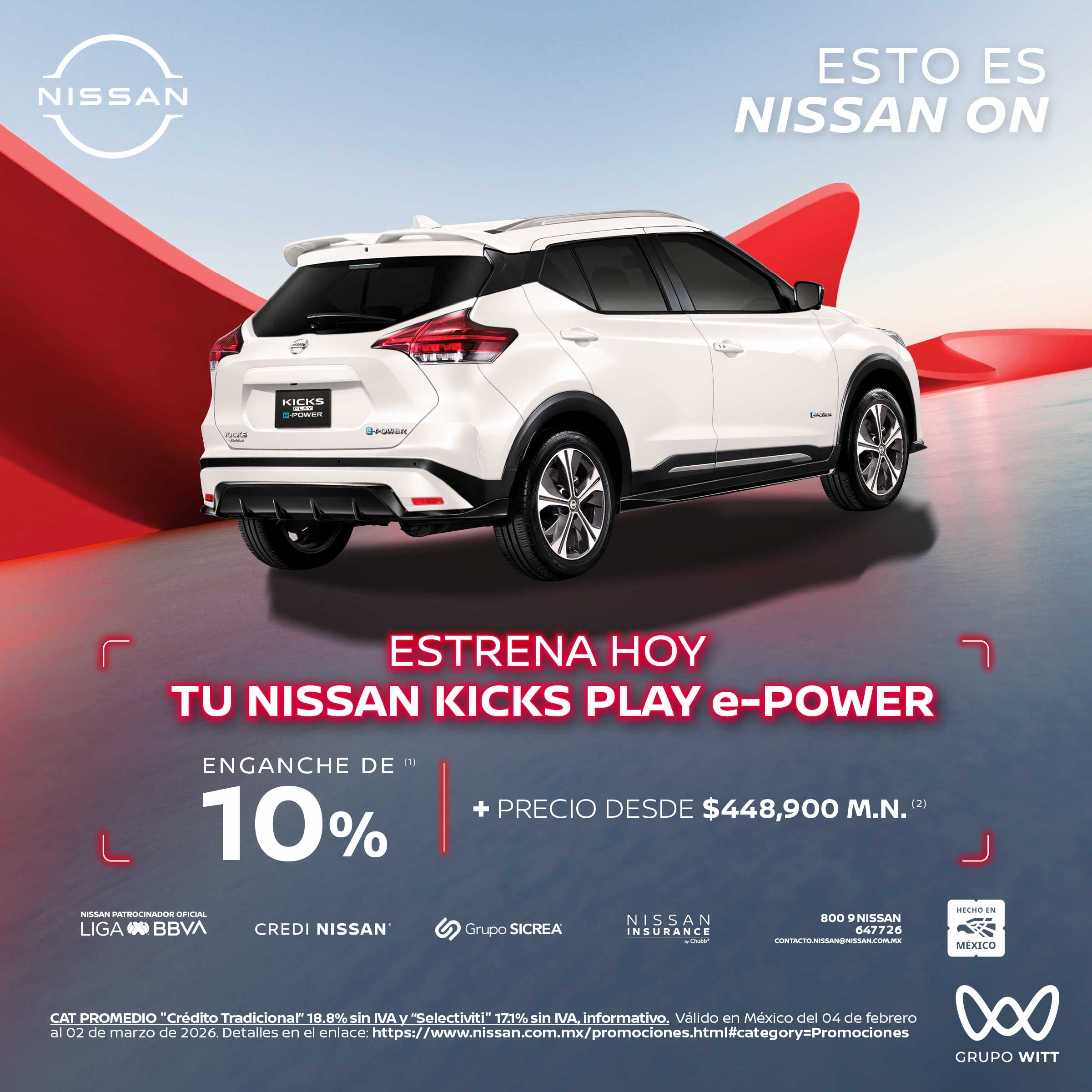 CAT PROMEDIO "Crédito Tradicional" 18.8% sin IVA y "Selectiviti" 17.1% sin IVA, informativo. Válido en México del 04 de febrero al 02 de marzo de 2026. Detalles en el enlace: https://www.nissan.com.mx/promociones.html#category=Promociones