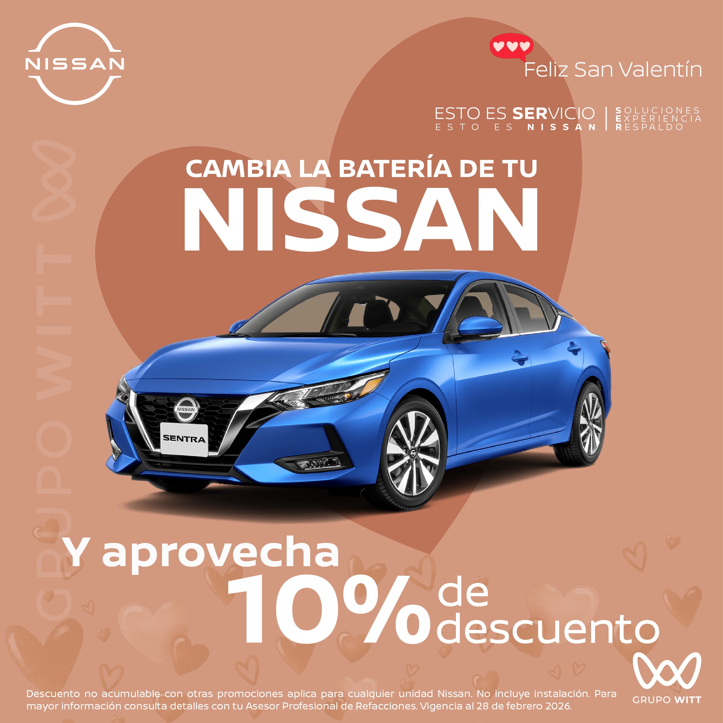Descuento no acumulable con otras promociones aplica para cualquier unidad Nissan. No incluye instalación. Para mayor información consulta detalles con tu Asesor Profesional de Refacciones. Vigencia al 28 de febrero 2026.