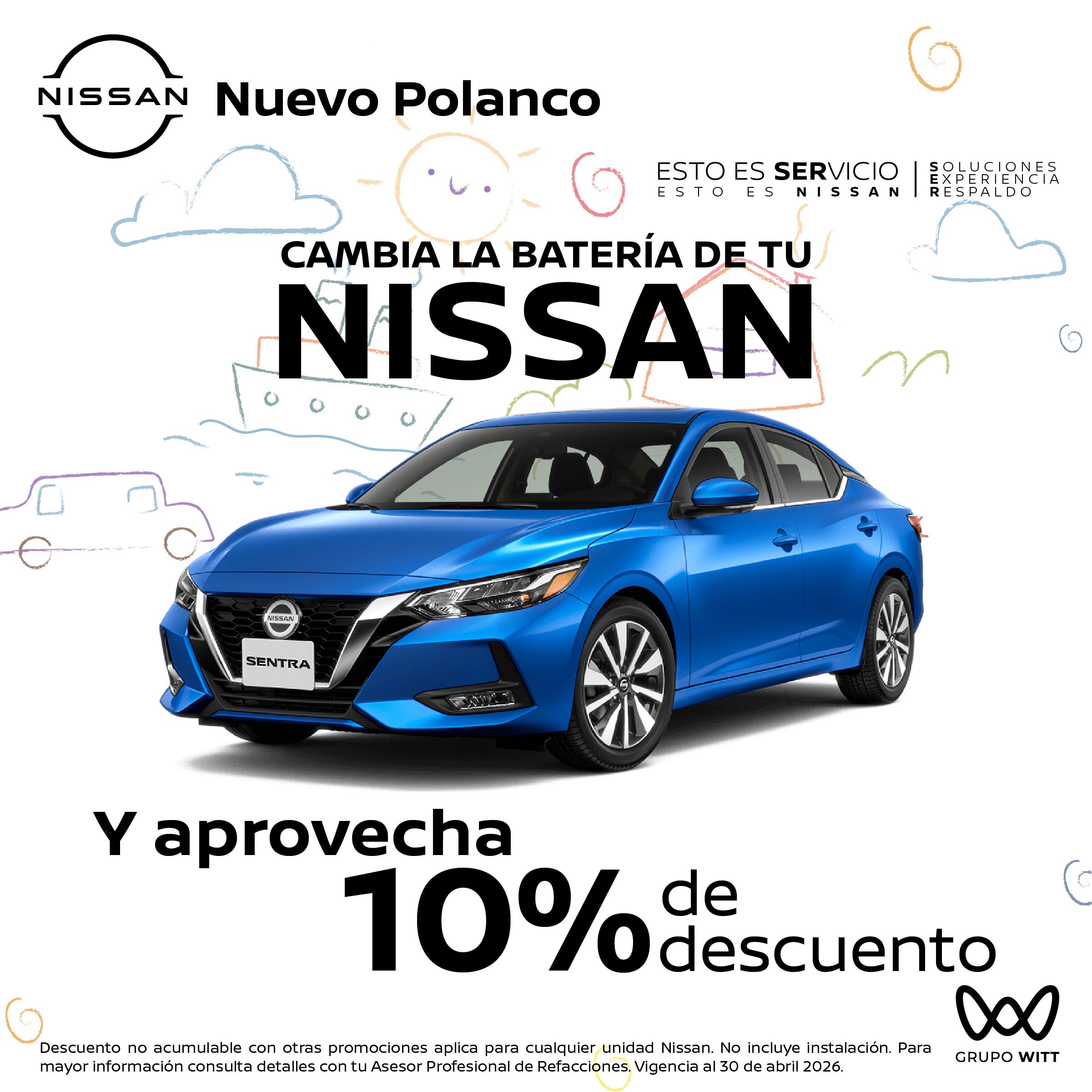 Descuento no acumulable con otras promociones aplica para cualquier unidad Nissan. No incluye instalación. Para mayor información consulta detalles con tu Asesor Profesional de Refacciones. Vigencia al 30 de abril 2026.
