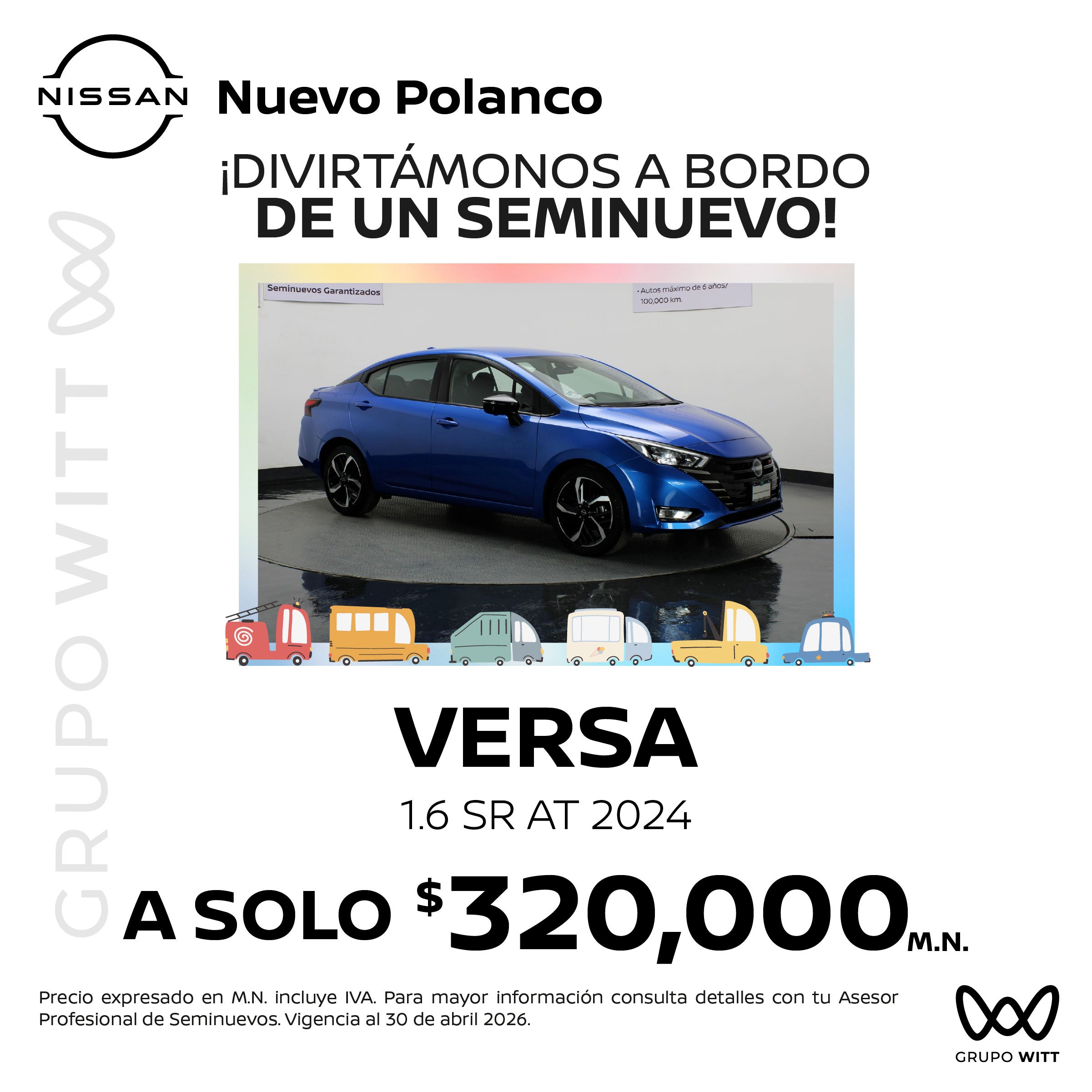 Precio expresado en M.N. incluye IVA. Para mayor información consulta detalles con tu Asesor Profesional de Seminuevos. Vigencia al 30 de abril 2026.